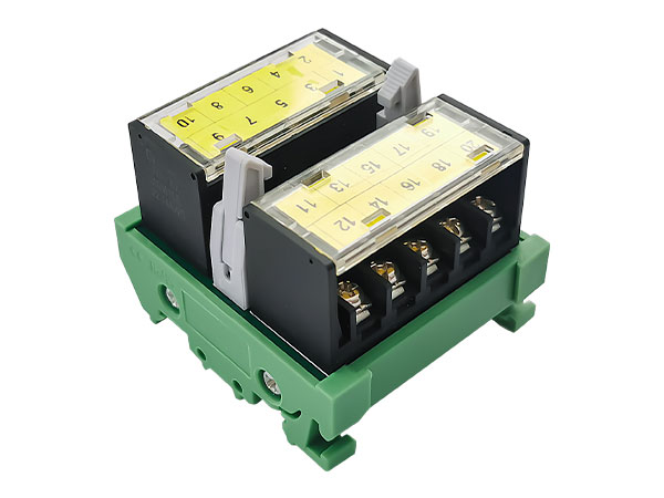 ④ 柵欄式端子輸出 ⑤4路繼電器模組,體積減小到最小⑥ 采用LED動作顯示,各輸入輸出端狀態 一目了然