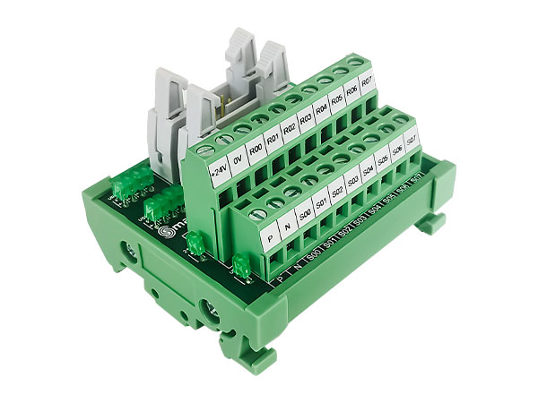 ④ 柵欄式端子輸出 ⑤4路繼電器模組,體積減小到最小⑥ 采用LED動作顯示,各輸入輸出端狀態 一目了然
